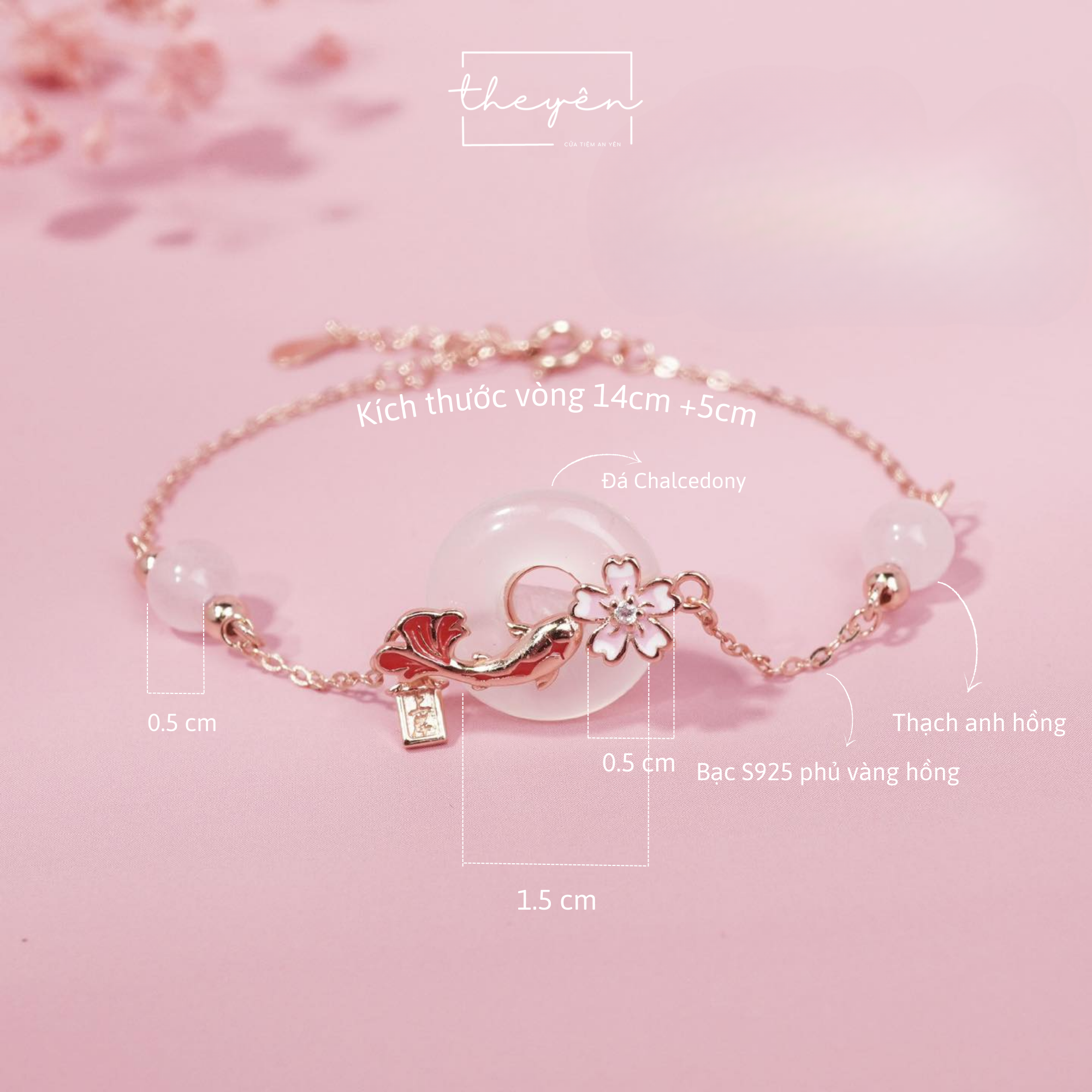 Một bên là vẻ đẹp mong manh, thoáng chốc nhưng kiêu hãnh. Một bên là ý chí kiên cường, dám vượt thác ghềnh để hóa thành rồng. Hai hình ảnh ấy được Tiệm gói ghém vào chiếc lắc tay Hankoi, mong có Hanakoi bên cạnh bạn luôn biết cạnh hài hòa giữa sức mạnh và dịu dàng trong nội tại. Vì chính sự cân bằng ấy mới làm nên vẻ đẹp trọn vẹn.