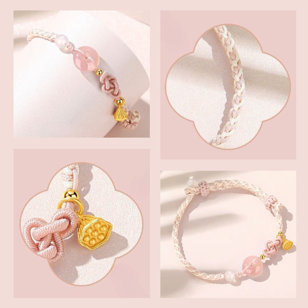 Vòng tay Dịu Dàng không chỉ là một món trang sức, mà còn là một tác phẩm nghệ thuật thủ công đầy tâm huyết. Dưới đôi bàn tay khéo léo của người thợ, từng sợi dây cotton mềm mại được đan xen một cách tỉ mỉ, tượng trưng cho những mối quan hệ gắn bó, bền chặt trong cuộc sống. Màu sắc của vòng tay được Tiệm lựa chọn rất cẩn thận, với tông màu hồng nhẹ nhàng, đại diện cho tình yêu, sự bao dung và niềm hy vọng. Đây là màu của sự khởi đầu, của những điều tươi đẹp.