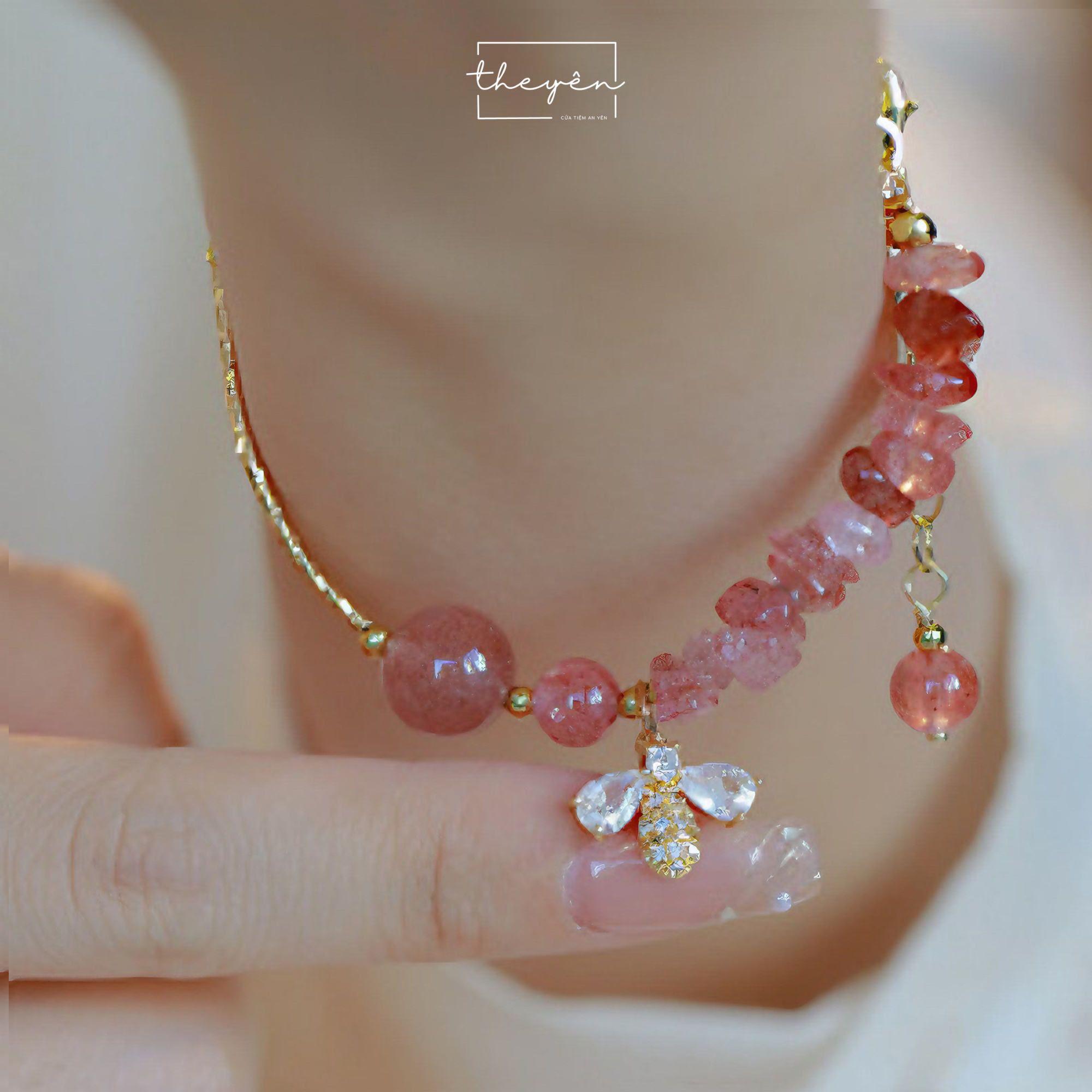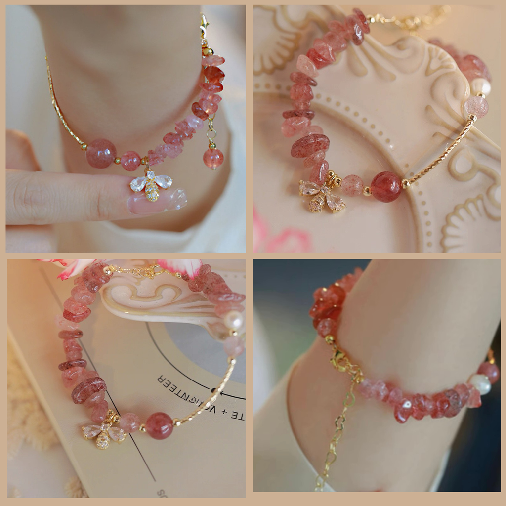 Được chế tác từ thạch anh dâu tây hồng, Lisa mang sắc hồng ngọt ngào, lấp lánh tựa “trái ngọt” của cuộc đời, thành quả xứng đáng cho mọi cố gắng. Các nghệ nhân đã tỉ mỉ kết hợp từng hạt đá với chi tiết charm ong đính đá zirconia, tạo nên vẻ đẹp vừa nữ tính vừa thanh lịch, dễ dàng kết hợp với nhiều phong cách thời trang.